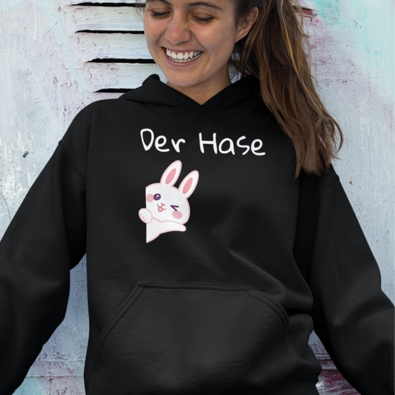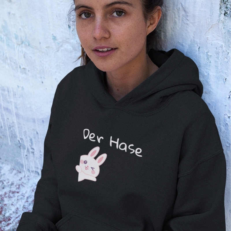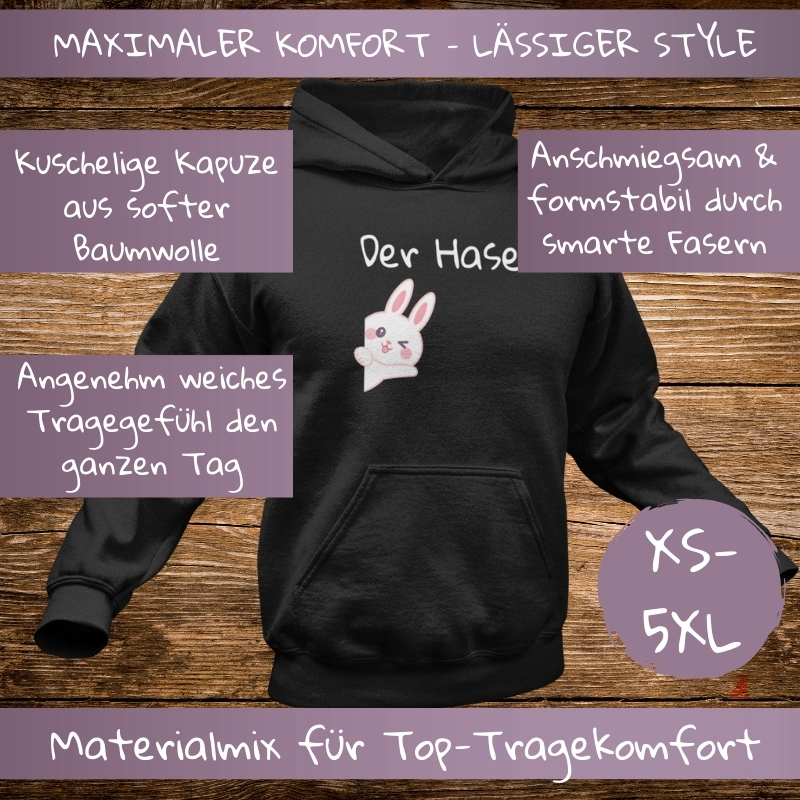Dieser stylische Hoodie mit dem frechen „Der Hase“-Motiv ist dein neuer Komplize für einen entspannten Look mit einer ordentlichen Portion Humor.