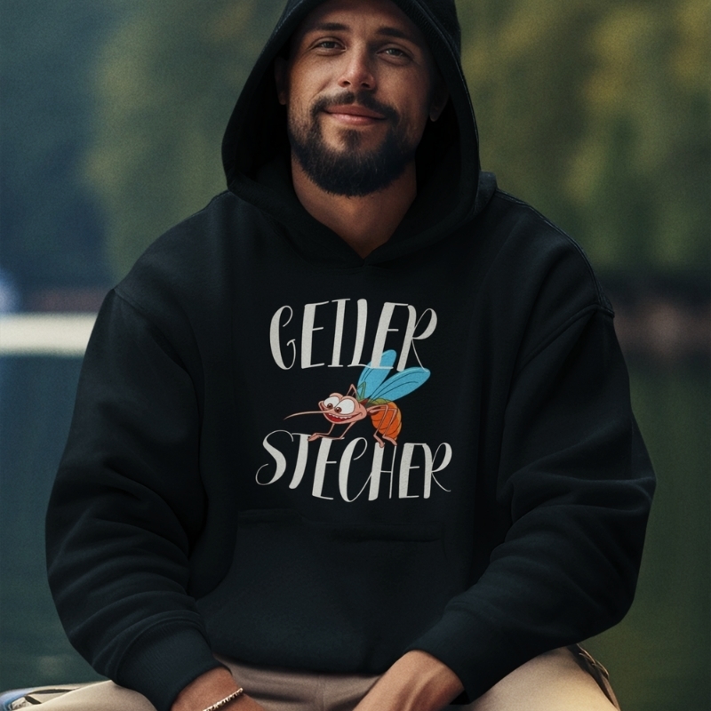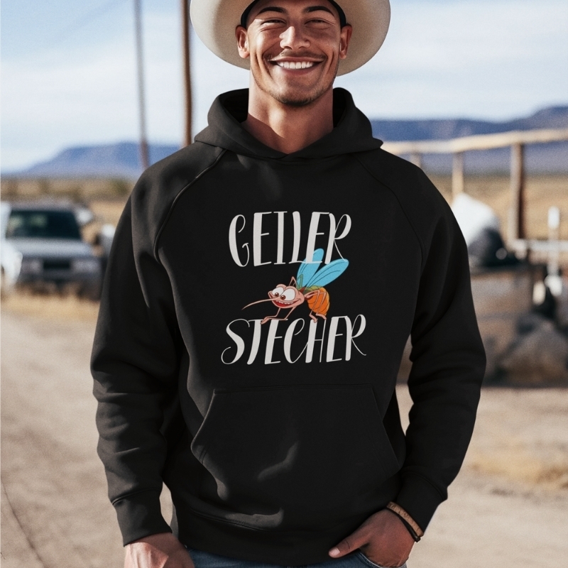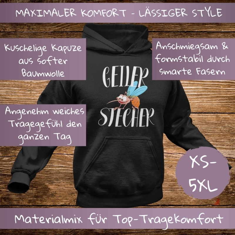 Hochwertiger Hoodie / Pullover mit Kapuze mit Spruch: Geiler Stecher
