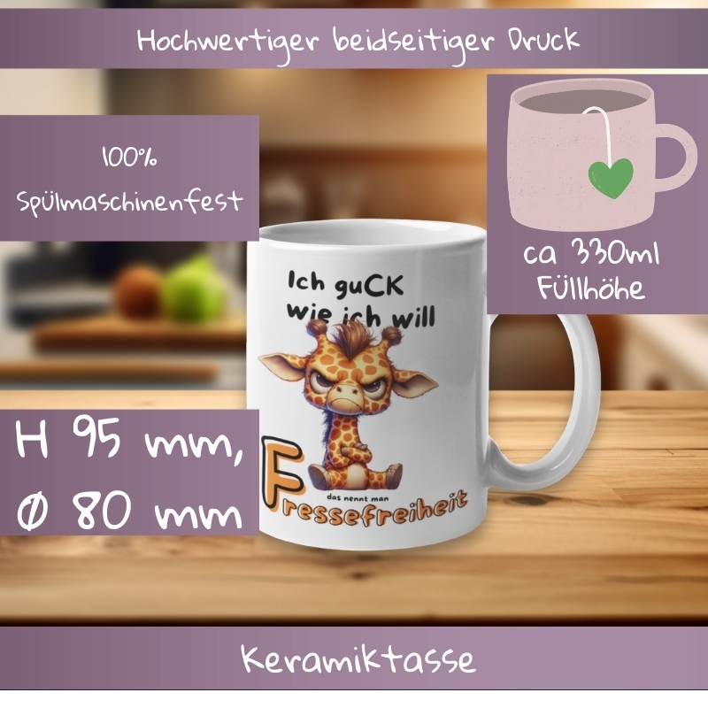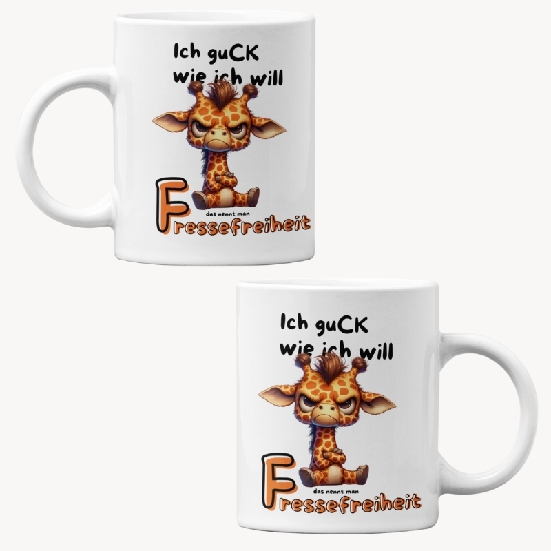 Beginnen wir den Tag mit einem Lächeln mit der Keramiktasse mit Spruch: Ich guck wie ich will!. Diese Tasse hat eine Füllhöhe von 330ml, perfekt für Ihren morgendlichen Kaffee oder Tee. Der beidseitige Druck sorgt dafür, dass der Spruch von jedem gesehen werden kann, egal ob Sie Rechts- oder Linkshänder sind.